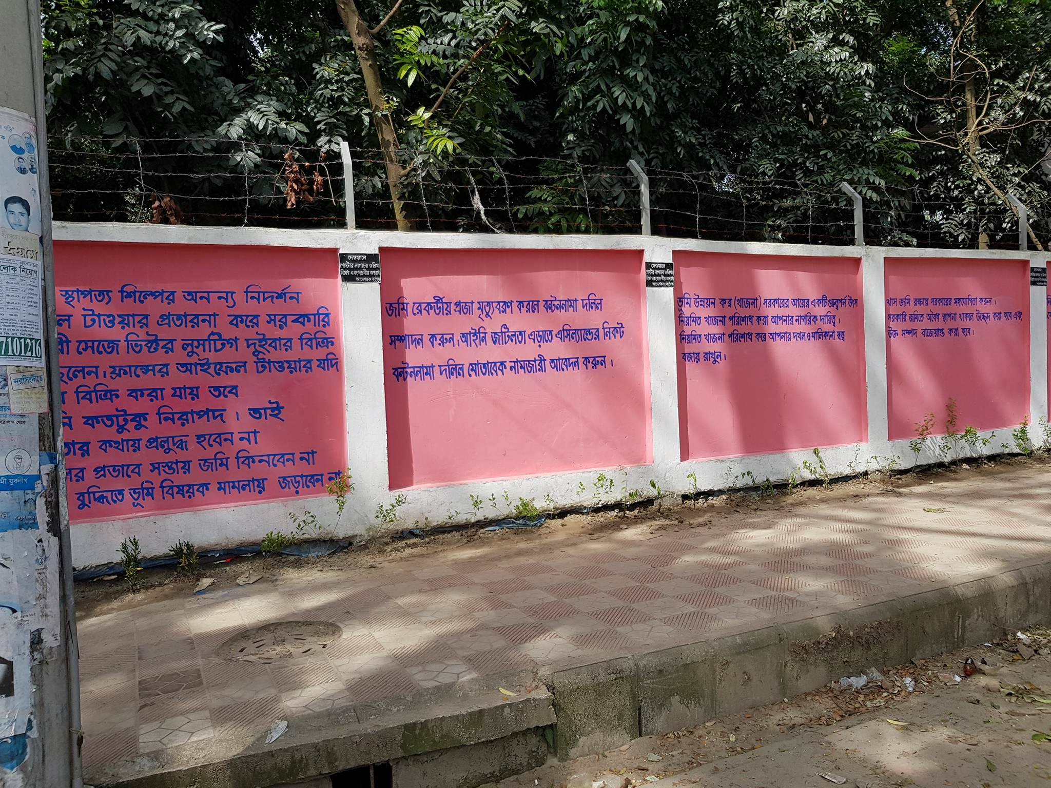 অফিসের বাউন্ডারী ওয়াল নির্মাণ করা হয়েছে দেয়ালে ভূমি সেবা সংক্রান্ত সচেতনতামূলক লেখনী দেওয়া আছে (ছবি সংযুক্ত)।